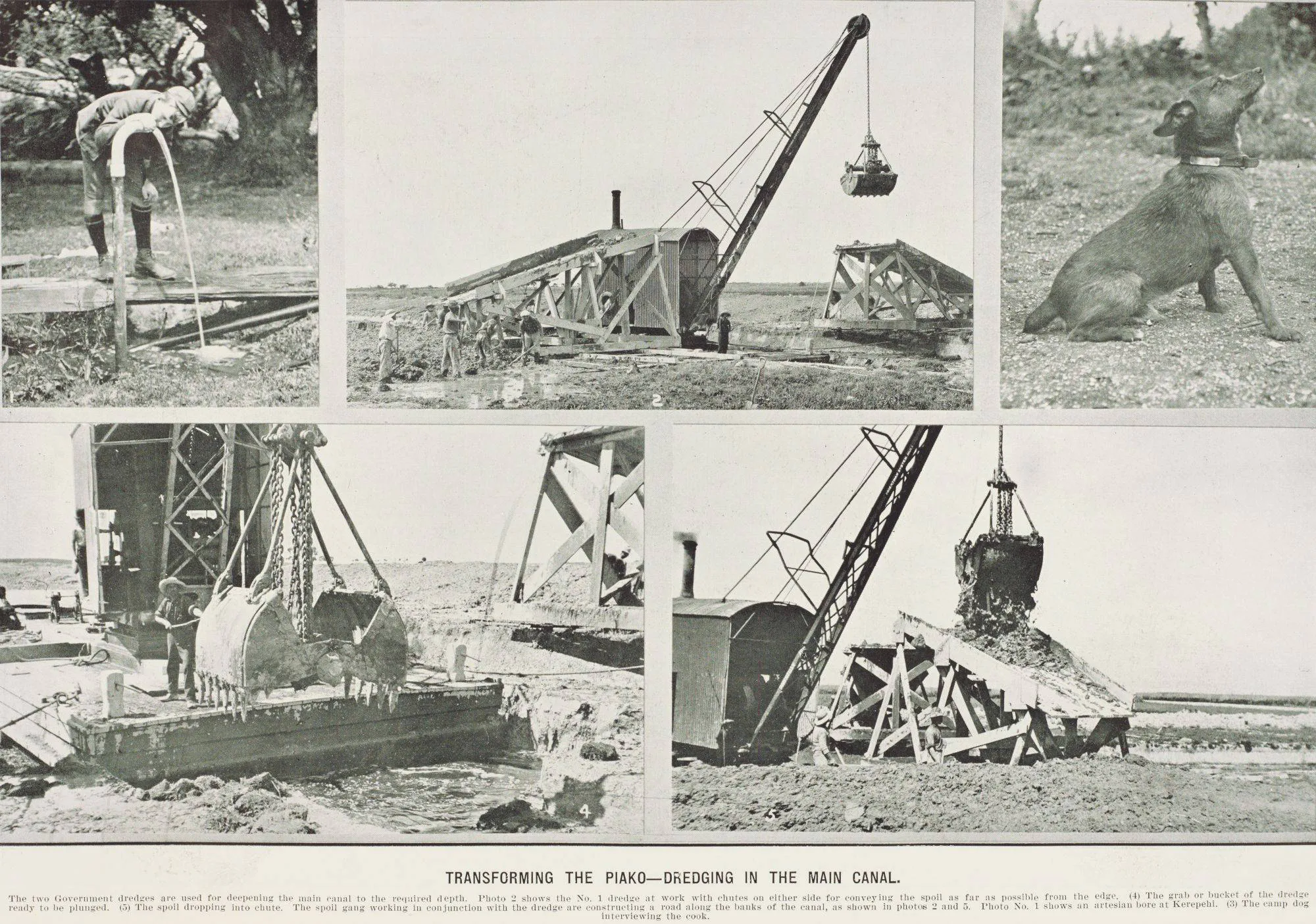 Transforming the Piako - dredging in the main canal The New Zealand Graphic and Ladies Journal, 9 February 1910, p.21 Auckland Libraries Heritage Collections NZG-19100209-0021-01