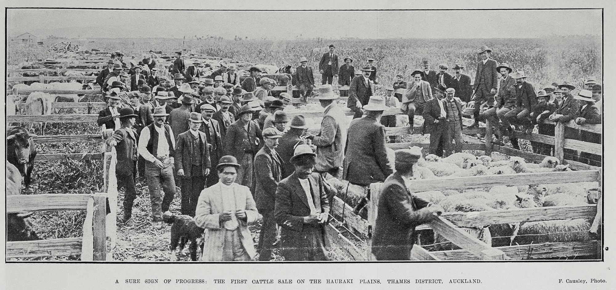 THE FIRST CATTLE SALE ON THE HAURAKI PLAINS, THAMES DISTRICT, AUCKLAND Auckland Weekly News; F. Causley 1912-05-02 AWNS-19120502-13-01