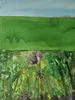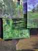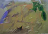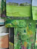 3. A wall installation using one long panorama painting or a few smaller ones of the 'now' Hauraki Plains at eyeline, and underneath paintings of peat, swamp, flax, forest - coming down the wall and onto the floor (peat). This idea inspired by Onosiokhue Yakubu's work in the BA/BFA Degree Show 2024 Photo credit: Thomas Jenkins.